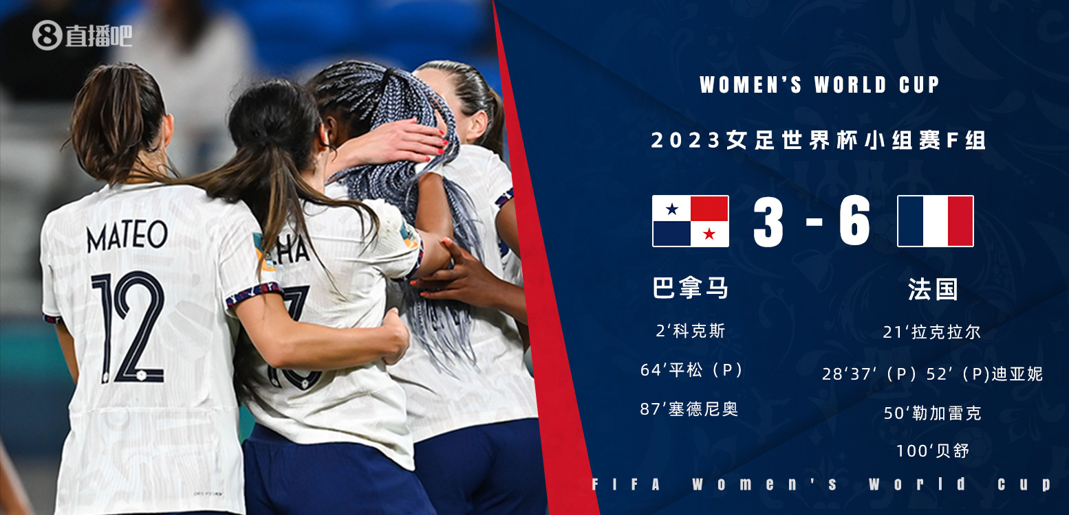 第90+11分钟,法国队右路传中,贝舒抢点破门!法国女足6-3巴拿马女足↓