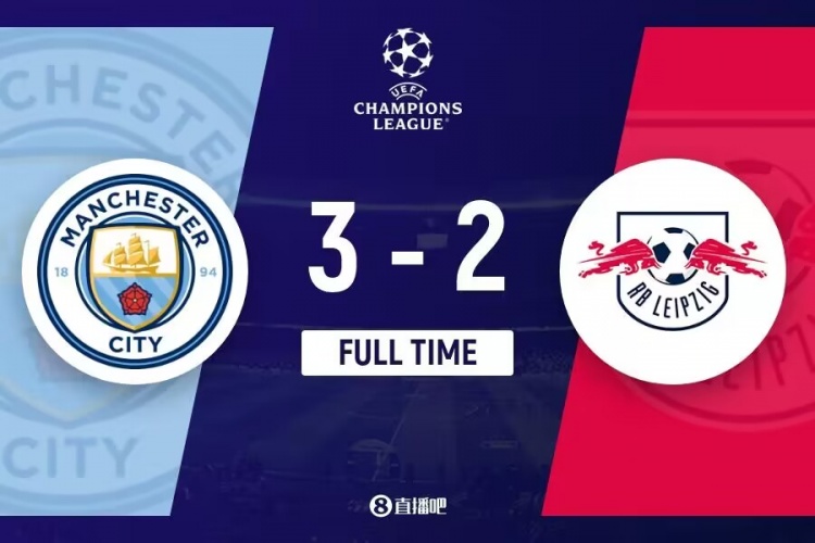 下半场补时6分钟。最终全场比赛结束,曼城3-2莱比锡。