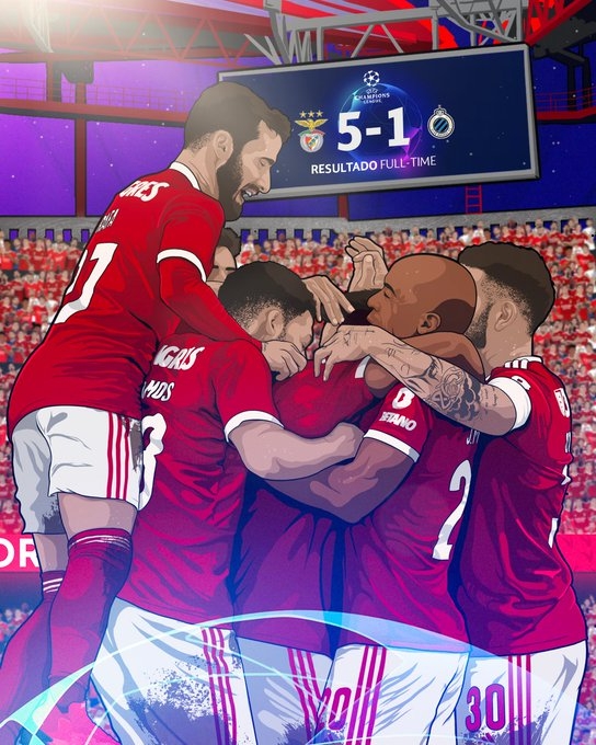 最终,欧冠1/8决赛次回合本菲卡5-1布鲁日,两回合比分本菲卡7-1布鲁日晋级欧冠八强。