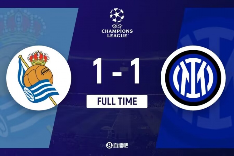 下半场伤停补时6分钟,全场比赛结束,最终国米1-1皇家社会。