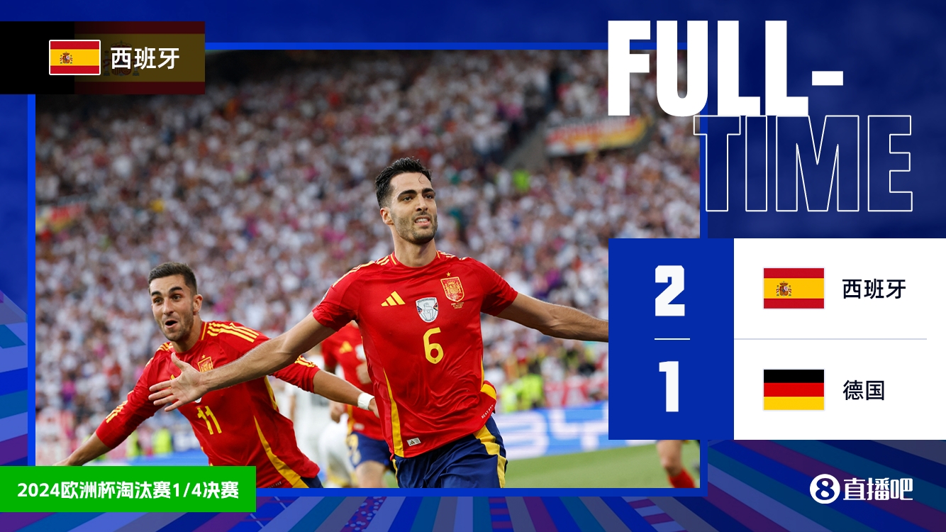 7月6日讯 北京时间0:00,欧洲杯1/4决赛首场较量,西班牙vs德国。克罗斯放倒佩德里,佩德里7分钟伤退;吕迪格、勒诺尔芒染黄,若晋级将停赛。下半场,奥尔莫破门;维尔茨89分钟绝平。梅里诺119分钟绝杀!卡瓦哈尔第126分钟染红!最终,西班牙2-1淘汰东道主德国!半决赛将迎战稍后葡萄牙vs法国的胜者!