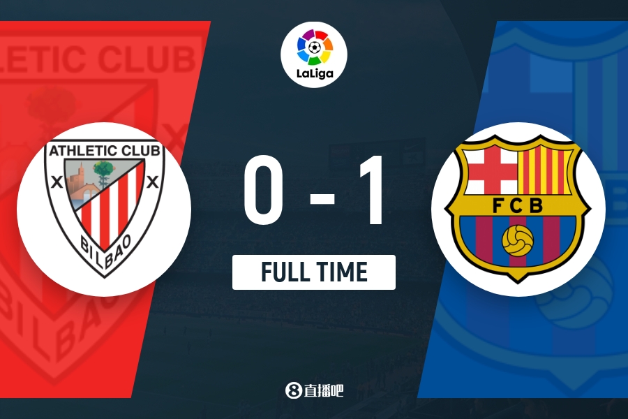 全场比赛结束,最终巴萨1-0毕尔巴鄂竞技。