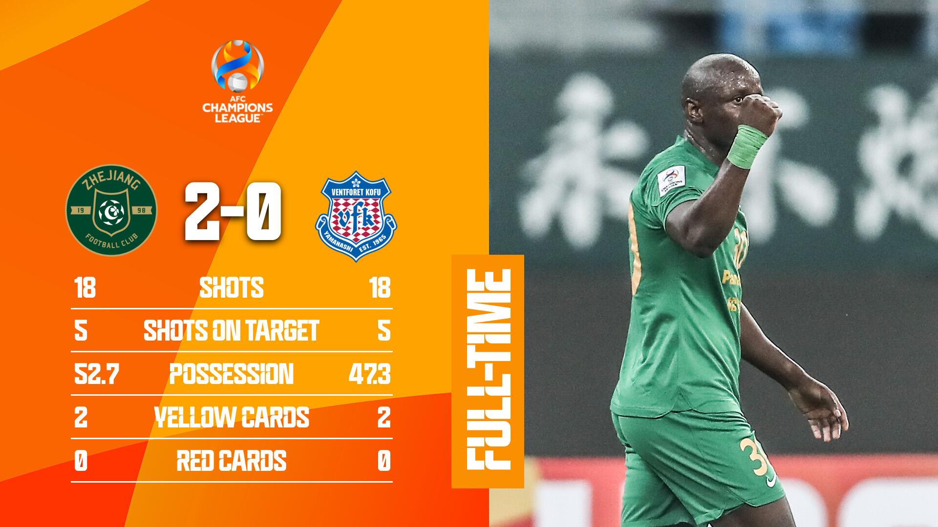10月25日讯 北京时间10月25日晚上18:00,亚冠H组第3轮,浙江主场迎战甲府风林。上半场,李提香助攻卢卡斯头球破门,赵博化解乌塔卡单刀。下半场,弗兰克送助攻,穆谢奎单刀挑射扩大比分。全场结束,浙江2-0甲府风林。本场过后,浙江取得小组赛首胜,目前他们积3分仍排名小组末位。