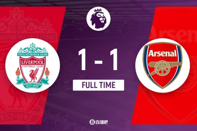 下半场补时5分钟,利物浦1-1阿森纳。