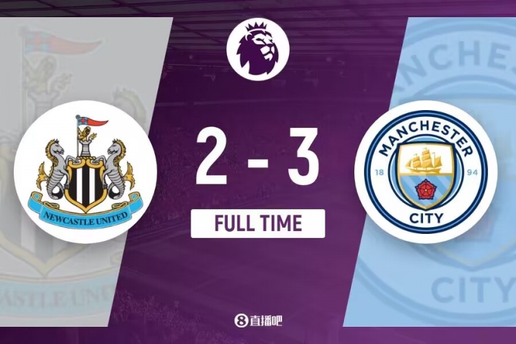 下半场伤停补时3分钟,全场比赛结束,最终曼城3-2纽卡斯尔。