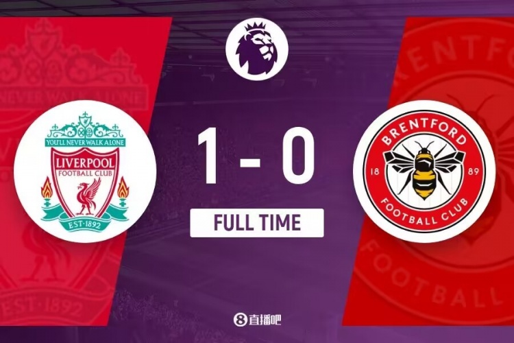 全场比赛结束,利物浦1-0击败布伦特福德。