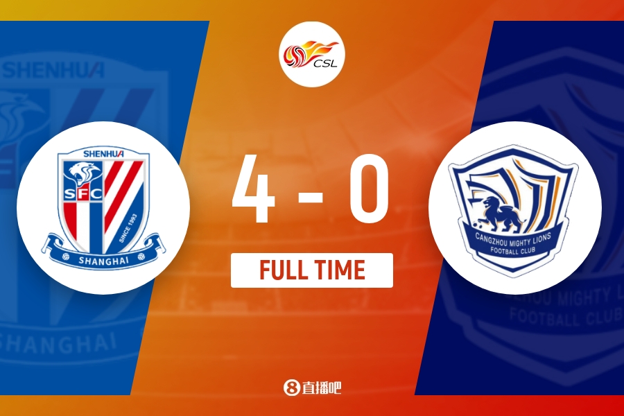 全场比赛结束,最终上海申花4-0沧州雄狮。