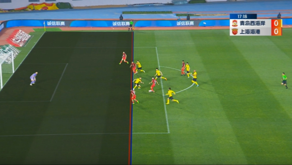 武磊11场13球!海港领先!第24分钟,海港的角球机会,巴尔加斯右路传中,奇塔迪尼头球摆渡,武磊门前头球接力入网!通过VAR,裁判示意进球有效,青岛西海岸0-1上海海港!↓