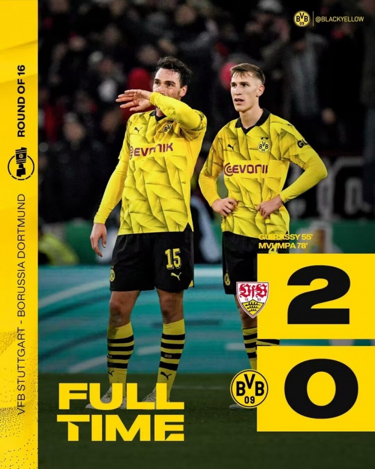 多特首发:1-科贝尔、4-施洛特贝克、15-胡梅尔斯、26-莱尔森、23-埃姆雷-詹、20-萨比策(46' 19-布兰特)、6-厄兹詹(78' 11-罗伊斯)、17-沃尔夫(46' 5-本塞拜尼)、43-吉滕斯(71' 21-马伦)、27-阿德耶米、18-穆科科(24' 14-菲尔克鲁格)