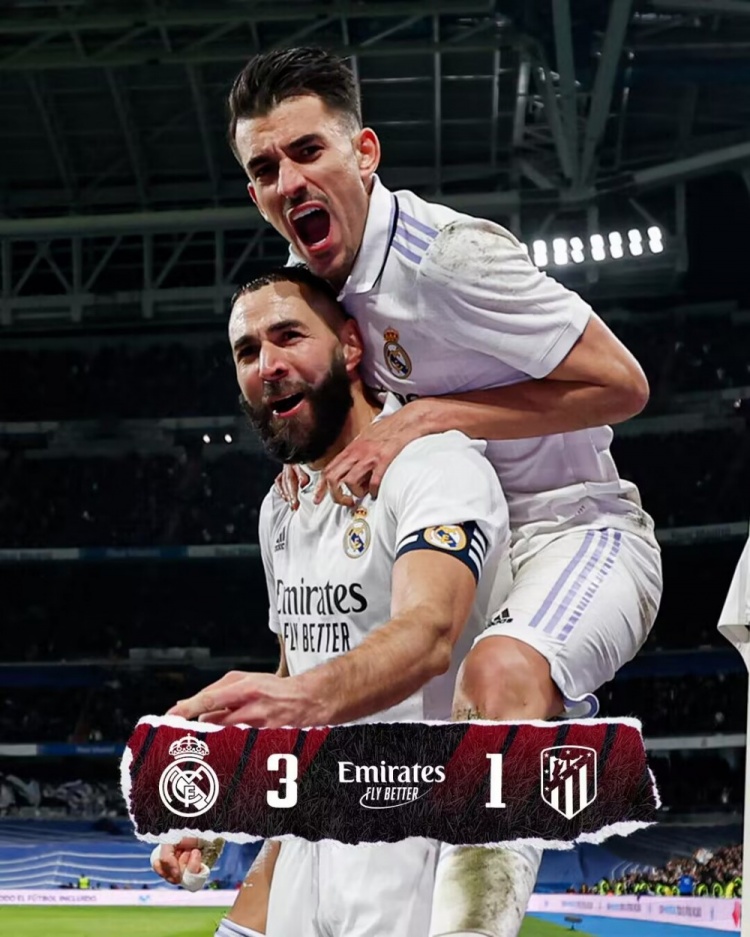 第104分钟,阿森西奥右路传中,中路的维尼修斯射门踢呲了,后点本泽马得球一脚低射破门,皇马2-1马竞。↓