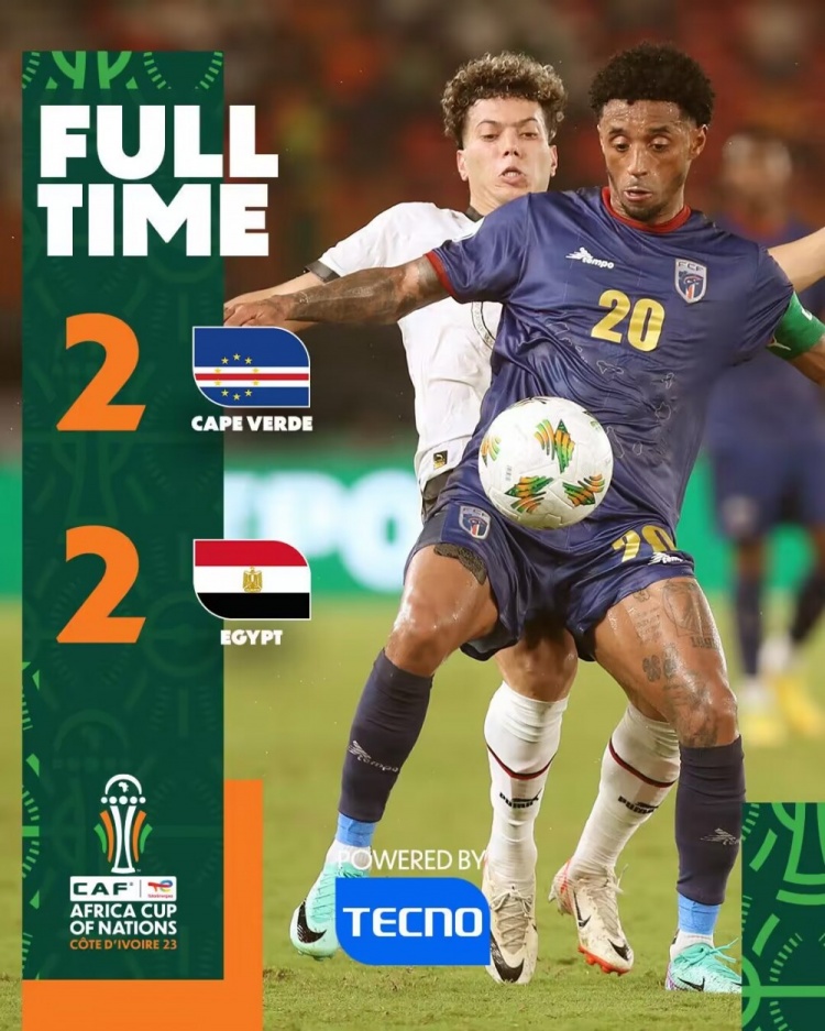 1月23日讯 北京时间1月23日凌晨4时,非洲杯小组赛B组第3轮,佛得角对阵埃及。上半场,吉尔森-塔瓦雷斯破门。佛得角半场1-0领先埃及。下半场,特雷泽盖打进一球,穆斯塔法-默罕默德补时破门,B-特谢拉扳平。最终埃及2-2战平佛得角。小组赛战罢,埃及三战皆平,排名小组第二出线,佛得角小组头名,加纳排名第三。