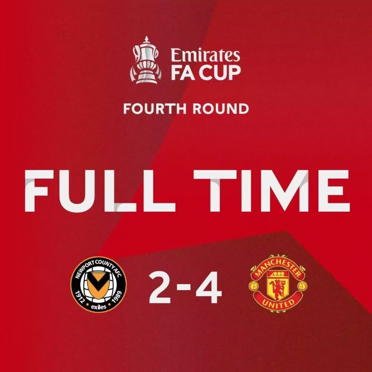 1月29日讯 北京时间1月29日凌晨0点30分,2023-24赛季足总杯第4轮展开角逐,曼联客场挑战英乙球队纽波特郡。上半场B费和梅努破门,安东尼赛季首助,打破0球0助尴尬,下半场安东尼收获赛季首球,打破跨赛季30场球荒,霍伊伦锁定胜局。最终曼联4-2战胜纽波特郡进16强,红魔下轮将对阵诺丁汉森林与布里斯托城之间的胜者。