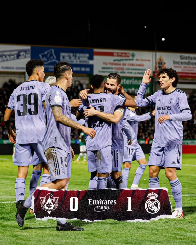 皇家马德里首发:13-卢宁、17-巴斯克斯、3-米利唐(45'22-吕迪格)、6-纳乔、16-奥德里奥索拉(50'5-巴列霍)、19-塞瓦略斯、18-楚阿梅尼(45'15-费德里科-巴尔韦德)、12-卡马文加、7-阿扎尔(68'39-阿尔瓦罗-马丁)、11-阿森西奥(81'33-阿里巴斯)、21-罗德里戈