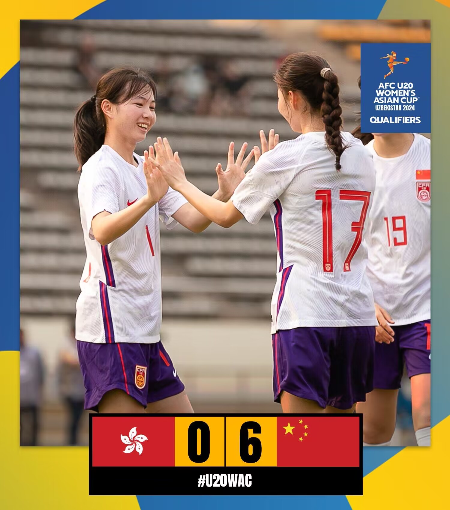 3月10日讯 北京时间3月10日17:00,U20女足亚洲杯预选赛第一阶段小组赛第2轮,中国U20女足对阵中国香港U20女足。上半场,欧阳玉环补射破门,卢家玉抽射建功,邹梦瑶中柱;下半场,欧阳玉环完成帽子戏法,霍悦欣破门,乔睿琪锦上添花。全场比赛结束,中国U20女足6-0击败中国香港,收获2连胜,球队预选赛末轮对阵东道主老挝。