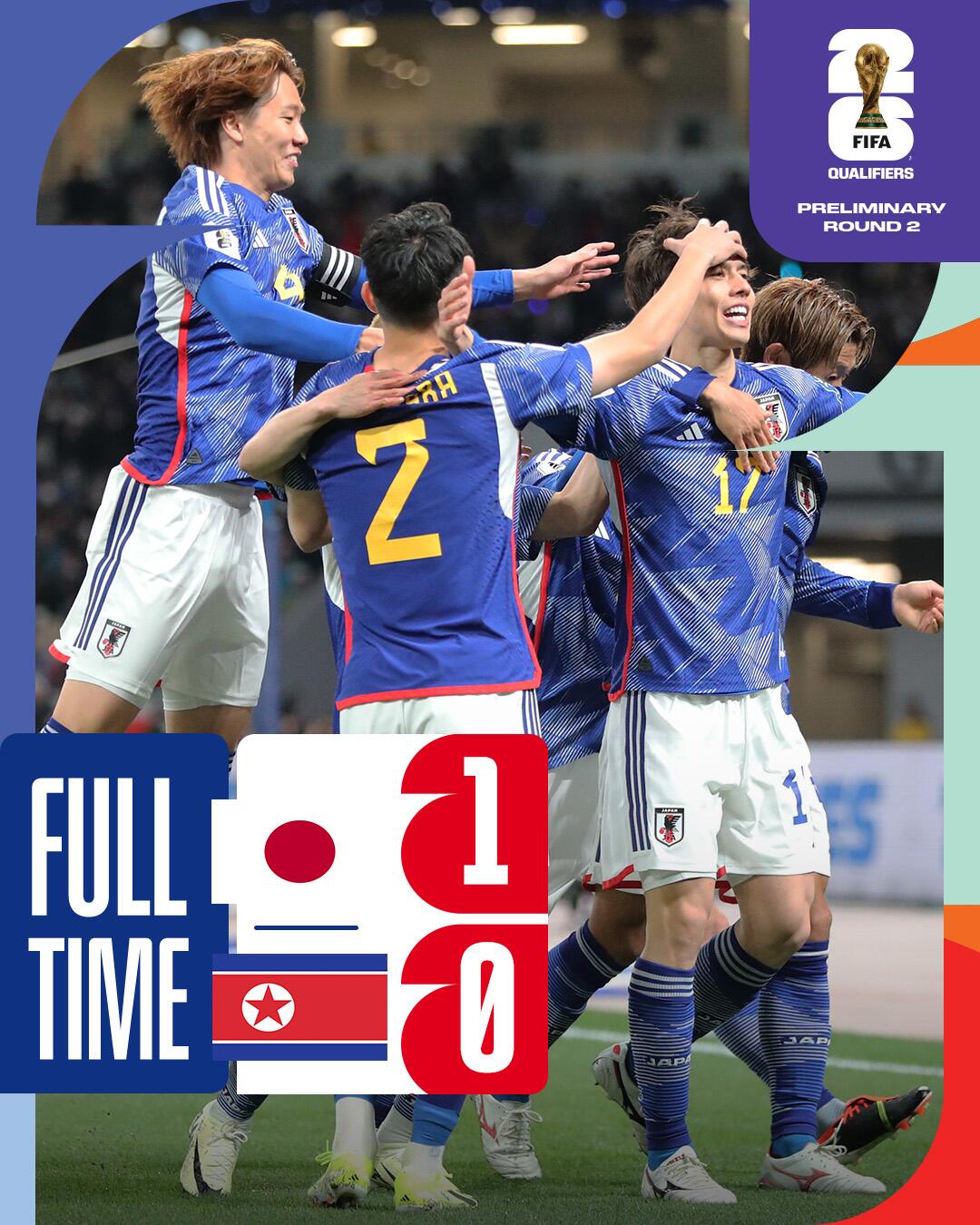 全场比赛结束,日本1-0朝鲜。