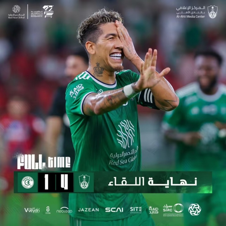 吉达国民首发:16-爱德华-门迪、3-伊巴涅斯、28-德米拉尔、37-辛迪、15-阿卜杜拉-阿马尔、79-凯西(88'29-迈杰德)、30-约哈尼(72'40-阿斯马里)、7-马赫雷斯(78'19-法哈德)、97-圣马克西曼(78'45-达里希)、20-布赖坎、10-菲尔米诺(78'8-苏梅罕)