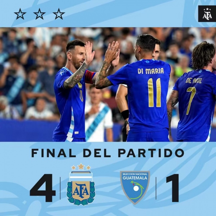 6月15日讯 北京时间6月15日08:00,国际足球友谊赛阿根廷挑战危地马拉的比赛,上半场马丁内斯乌龙球,哈根失误梅西推射空门扳平比分,卡博尼造点,劳塔罗点射反超比分,半场结束,阿根廷2-1危地马拉。下半场梅西助攻劳塔罗破门扩大比分,迪马利亚助攻梅西再下一城,最终阿根廷4-1逆转危地马拉,阿根廷将在6月21日迎来美洲杯首战。
