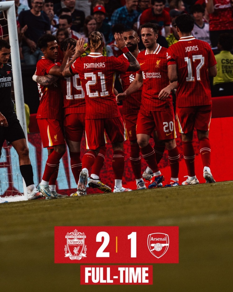 8月1日讯 北京时间7:30,季前友谊赛利物浦vs阿森纳。上半场,埃利奥特助攻双响,萨拉赫和法比奥-卡瓦略破门;哈弗茨扳回一球。下半场双方均无建树。最终,利物浦2-1战胜阿森纳,取得季前热身赛两连胜!