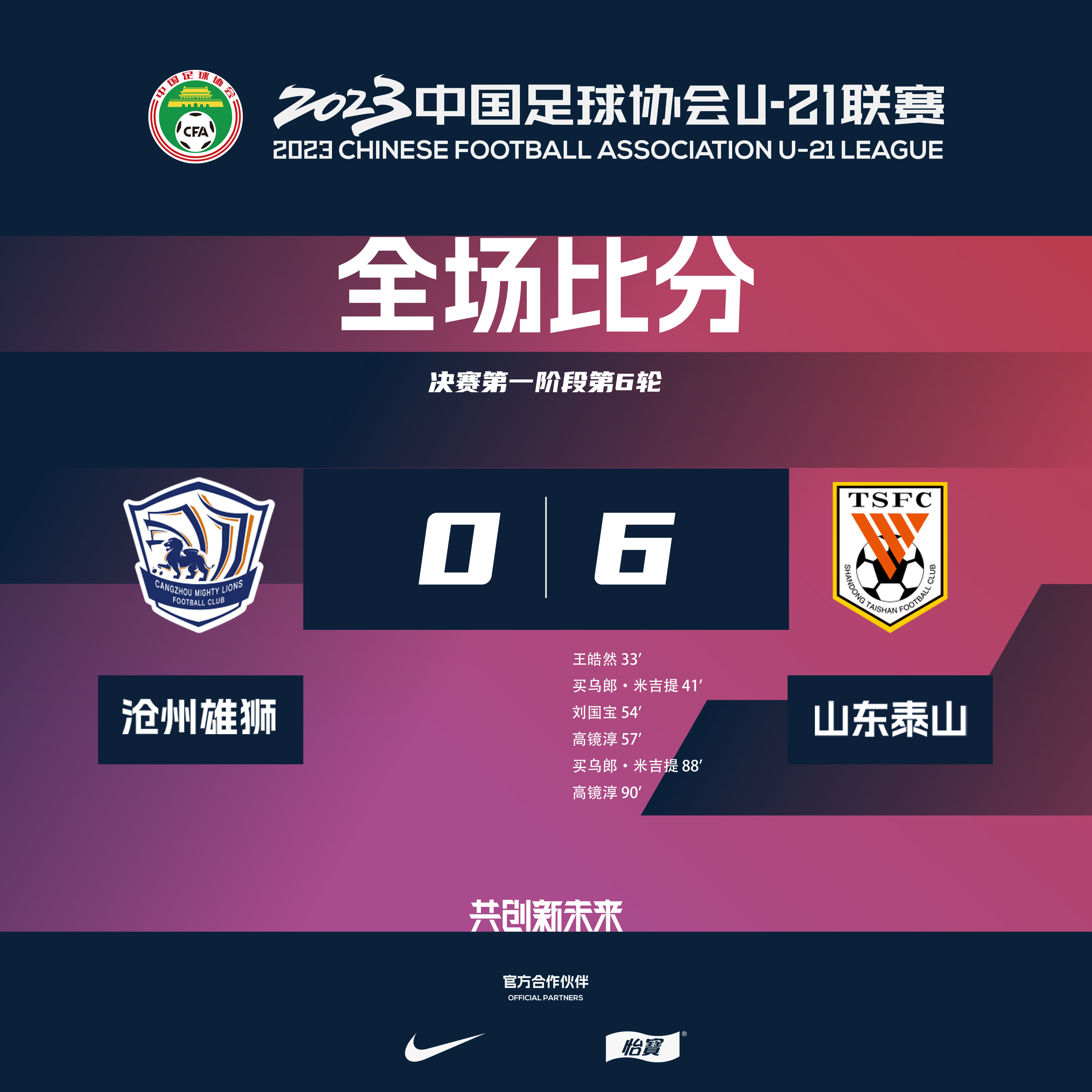 6月8日讯 2023中国足协U21联赛总决赛第一阶段(大连赛区)第6轮,山东泰山U21六球大胜沧州雄狮。
