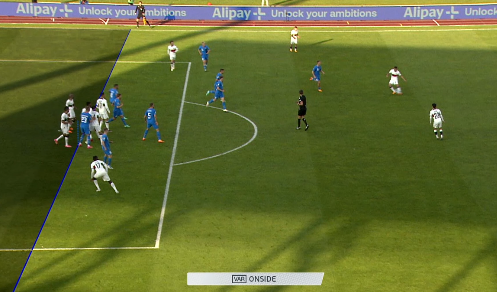 第70分钟,C罗前场接长传球胸部停球后到禁区打门打高了,随后裁判吹罚越位在先。↓