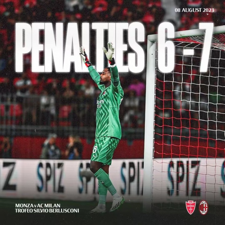 点球大战,米兰先罚,蒙扎后罚。