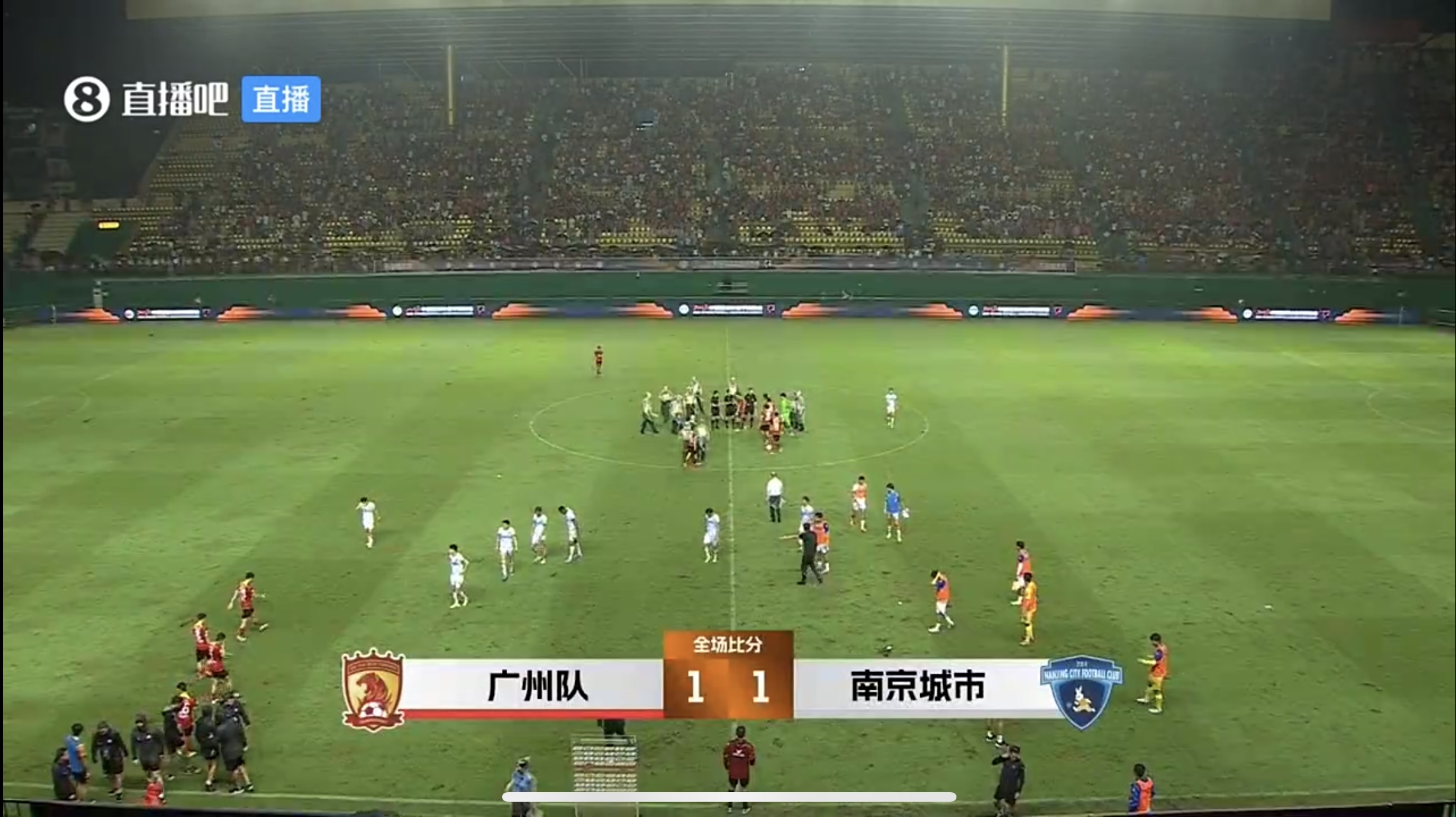 第41分钟,南京城市左侧大禁区线上的远射被门将扑出,后门柱埋伏的吴兴涵轻松补射破门,但边裁举旗示意越位在先进球无效↓