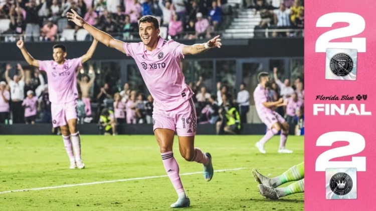 10月19日讯 美职联常规赛,迈阿密国际vs夏洛特FC。上半场VAR取消夏洛特点球,布斯克茨抬脚过高染黄,戈麦斯失良机,最后时刻科贝蒂帮助客队取得进球,补时阶段斯特法内利扳平。易边再战,巴尔加斯破门,艾伦错失超级单刀,斯特法内利进球被吹,罗宾逊再次扳平。最终迈阿密国际2-2夏洛特FC。积分榜方面,此前已经确定无缘季后赛的迈阿密六场不胜积34分仍居倒二,夏洛特积40分暂列第12。