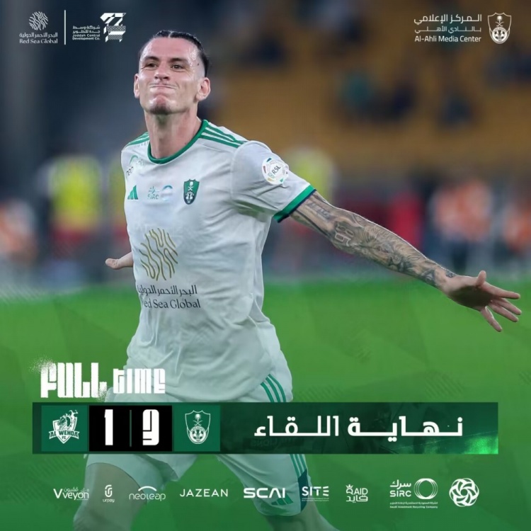 吉达国民首发:16-爱德华-门迪、15-阿卜杜拉-阿马尔(90+8'30-阿尔约哈尼)、3-伊巴涅斯、6-胡拉吉、37-辛迪、24-维加、29-穆罕穆德-马吉哈德(77'8-纳比特)、79-凯西(49'40-阿斯马里)、7-马赫雷斯、10-菲尔米诺(90+8'31-亚斯拉姆)、97-圣马克西曼(90+8'19-阿拉希迪)